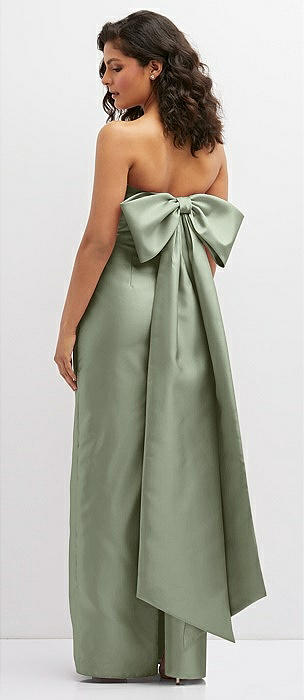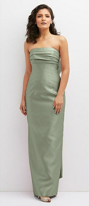 Strapless Draped Bodice Column Dress with Oversized Bow in sage