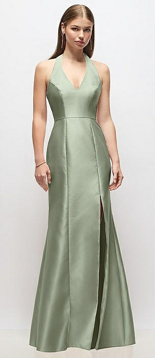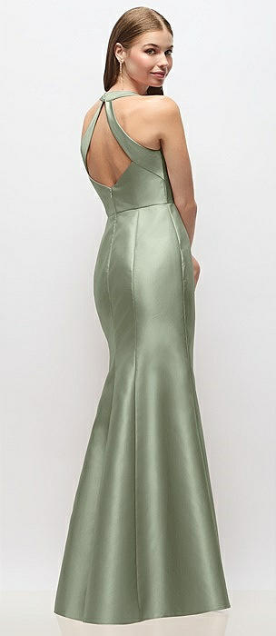 Sleeveless Satin Trumpet Gown with Bow at Open-Back in sage