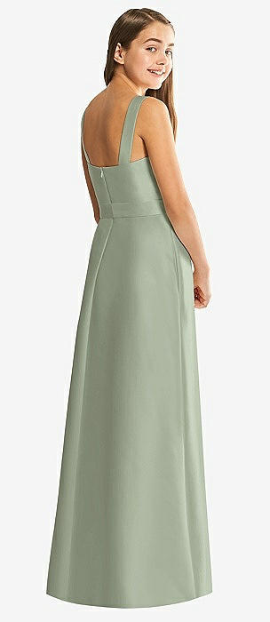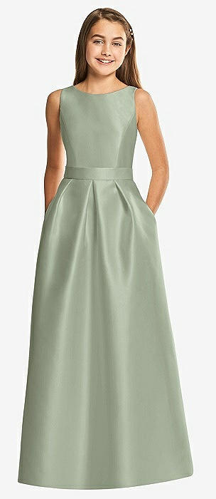 Sleeveless A-Line Satin Dress with Pockets in sage