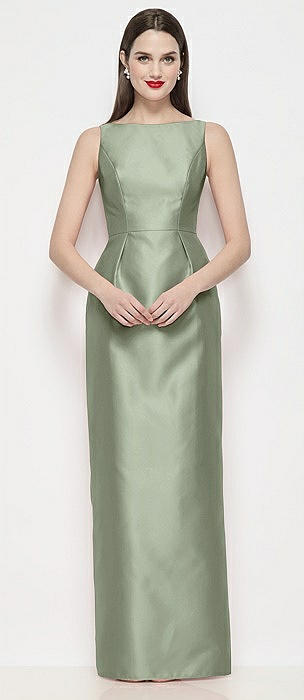 Bateau Neck Satin Maxi Dress with Pleated Column Skirt in sage