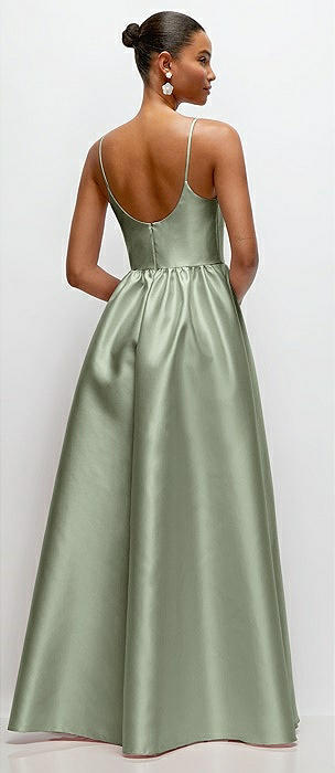 Scoop Neck Drop Basque Skirt Satin Maxi Dress with Pockets in sage