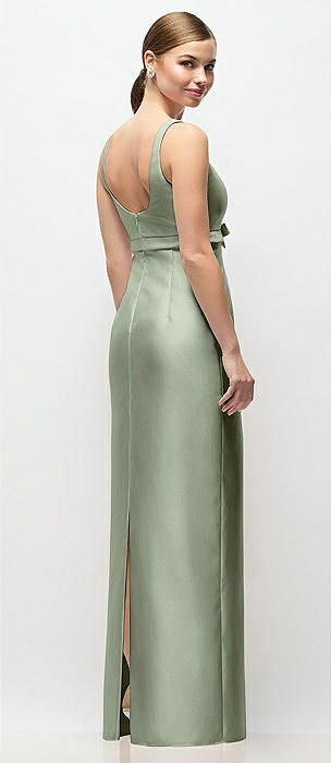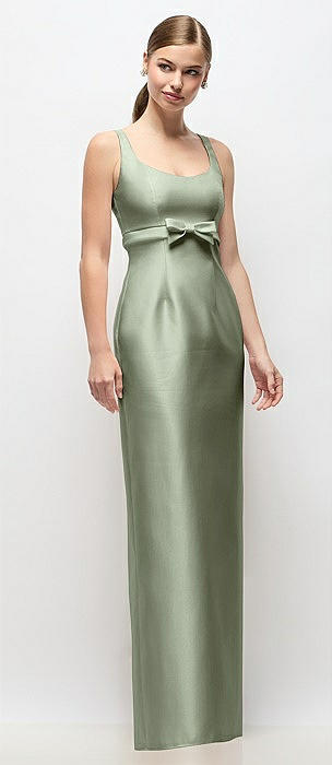 Scoop Neck Satin Column Maxi Dress with Bow at Empire Waist in sage