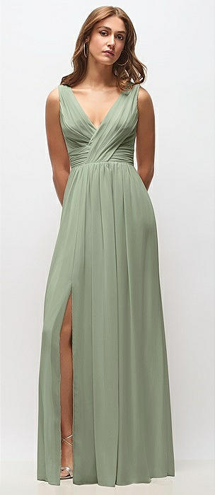 Sleeveless Draped Chiffon Maxi Dress with Front Slit in sage