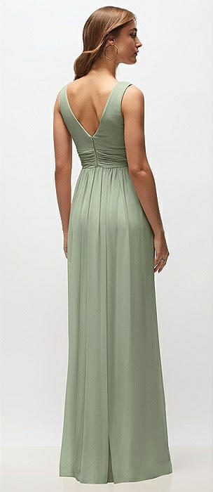 Sleeveless V-Neck Chiffon Wrap Dress in sage