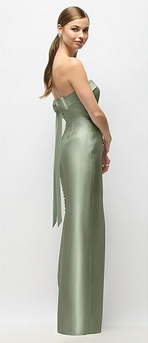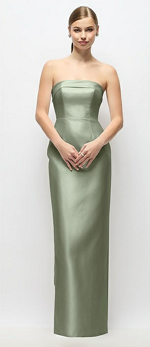 Strapless Cuff Satin Maxi Dress with Column Skirt & Back Bow in sage