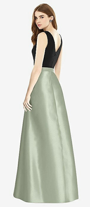 Sleeveless A-Line Satin Dress with Pockets in sage