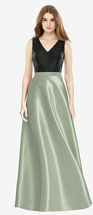 Sleeveless A-Line Satin Dress with Pockets in sage