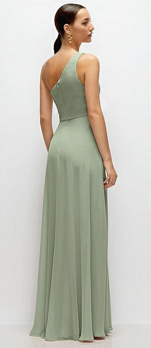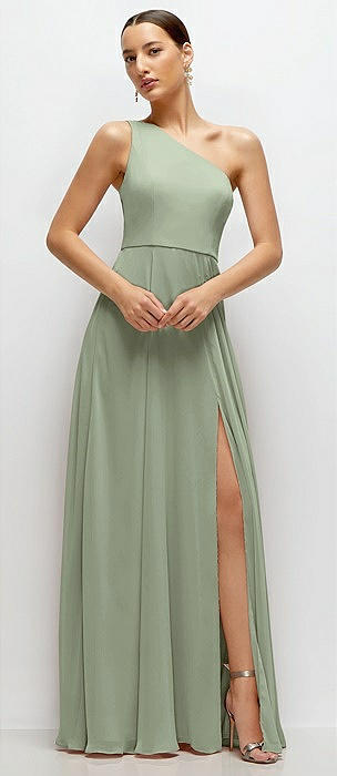 Chiffon One-Shoulder Maxi Dress with Circle Skirt in sage