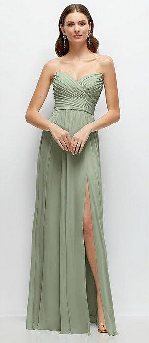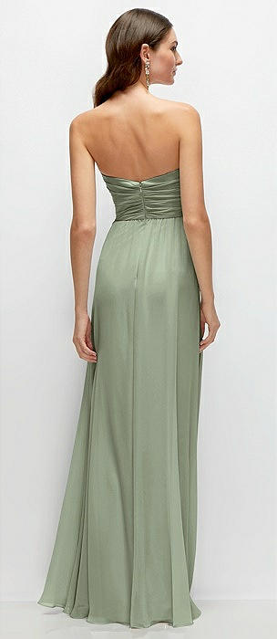 Strapless Pleated Surplice Chiffon Maxi Dress with A-Line Skirt in sage