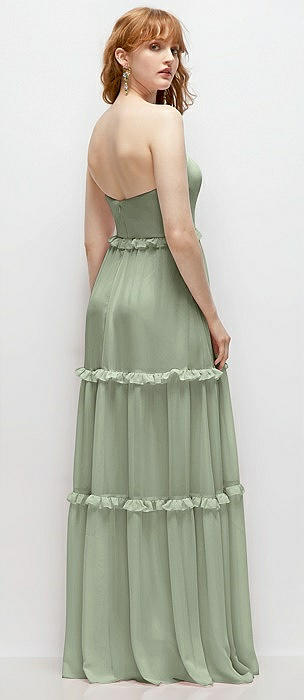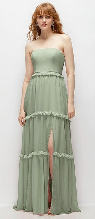 Strapless Chiffon Maxi Dress with Tiered Micro Ruffle Full Skirt in sage