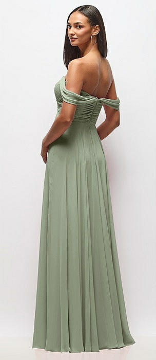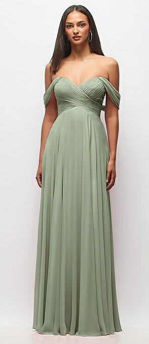 Off-the-Shoulder Draped Chiffon Maxi Dress in sage