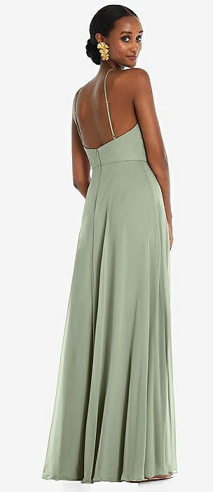 Open Neckline Cutout Satin Twill A-Line Gown with Pockets in sage