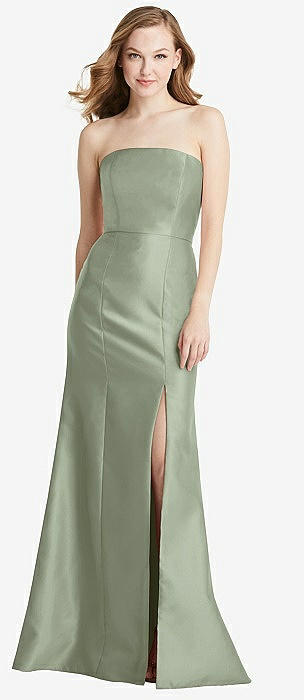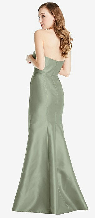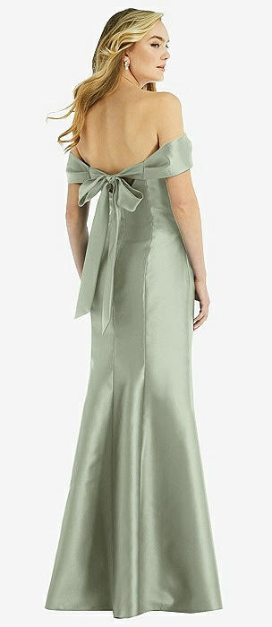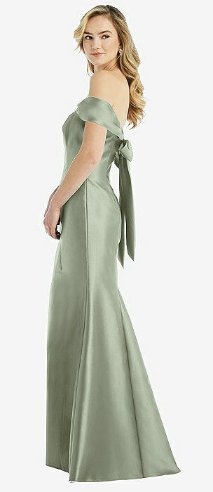 Off-the-Shoulder Bow-Back Satin Trumpet Gown in sage