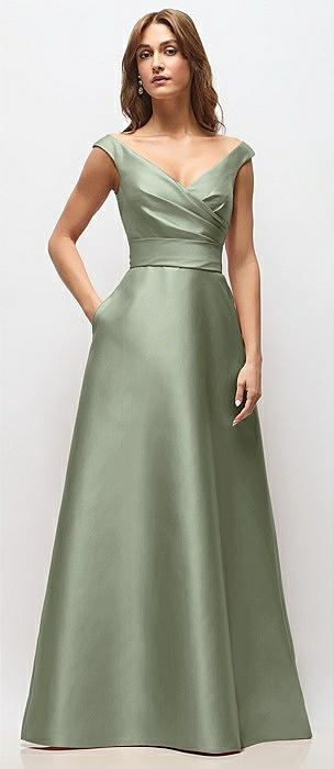 Sage Off-The-Shoulder Bridesmaid Dresses