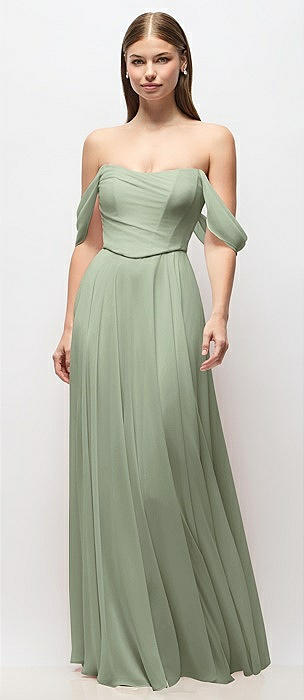 Off-the-Shoulder Basque Corset Chiffon Maxi Dress in sage