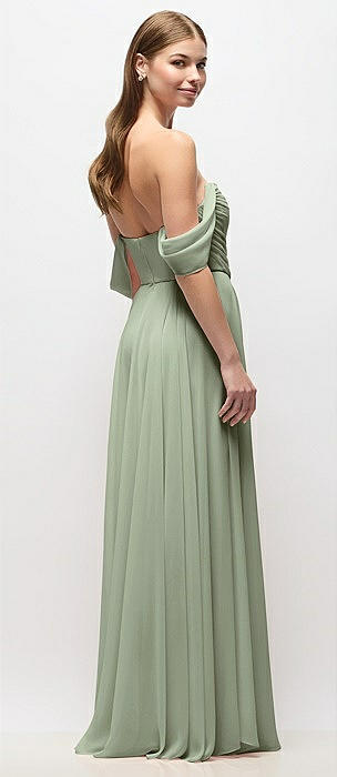 Strapless Chiffon Maxi Dress with Asymmetrical Ruched Drop Waist in sage