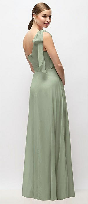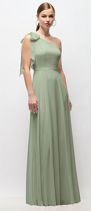 Draped One-Shoulder Maxi Dress with Scarf Bow in sage