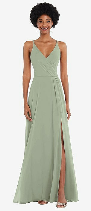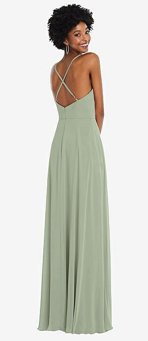 Faux Wrap Criss Cross Back Maxi Dress with Adjustable Straps in sage