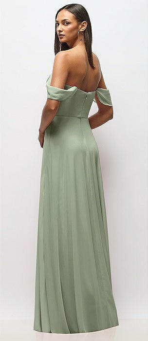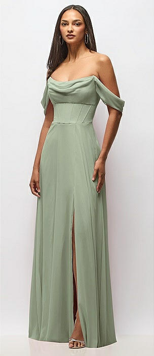 Chiffon Corset Maxi Dress with Removable Off-the-Shoulder Swags in sage