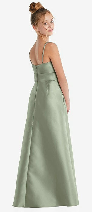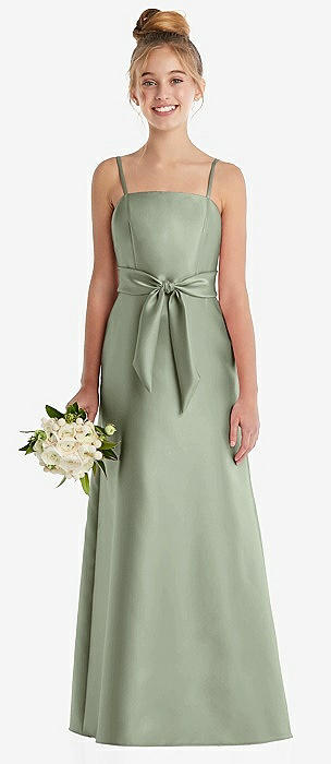 Spaghetti Strap Satin Junior Bridesmaid Dress with Mini Sash in sage