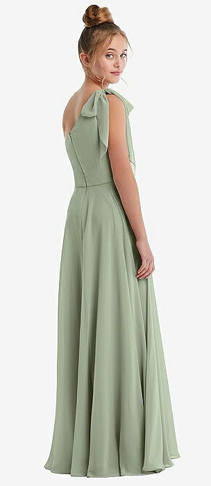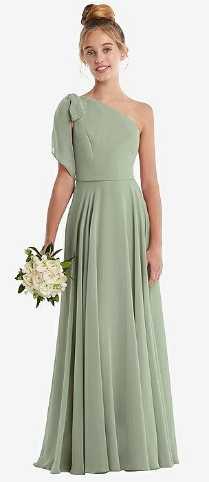One-Shoulder Scarf Bow Chiffon Junior Bridesmaid Dress in sage