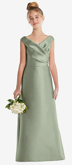 Off-the-Shoulder Draped Wrap Satin Junior Bridesmaid Dress