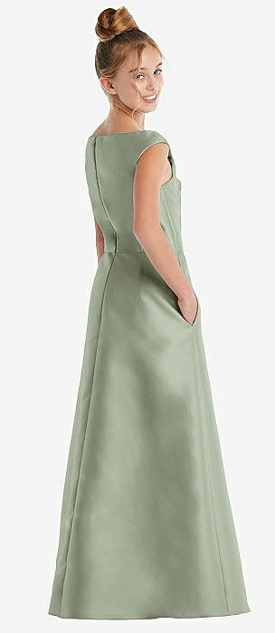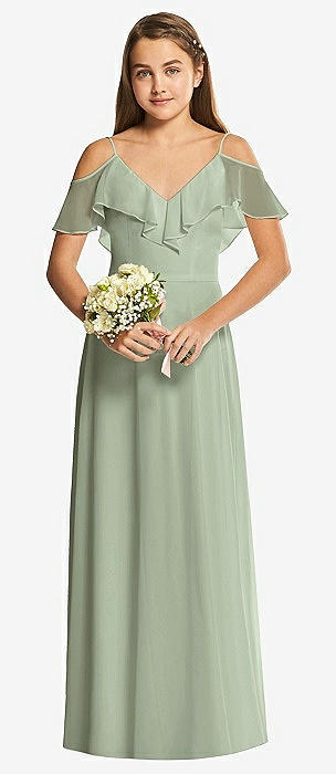 Sage V-Neck Junior Bridesmaid Dresses