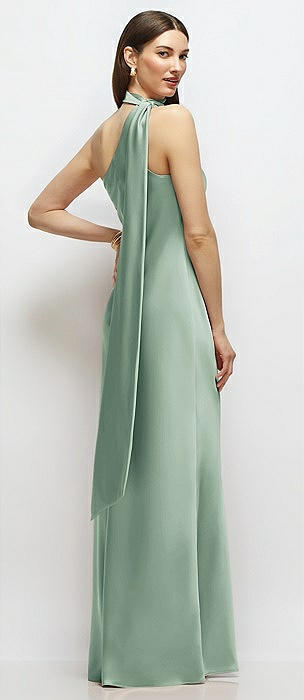 Cowl Halter Open-Back Satin Maxi Dress in seagrass