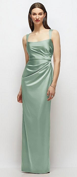 Scoop Neck Draped Column Stretch Satin Maxi Dress in seagrass