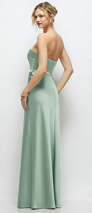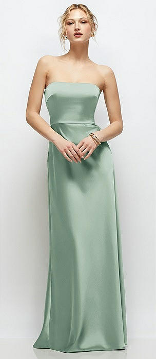 Strapless A-Line Stretch Satin Maxi Dress in seagrass