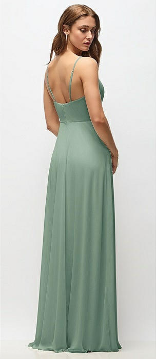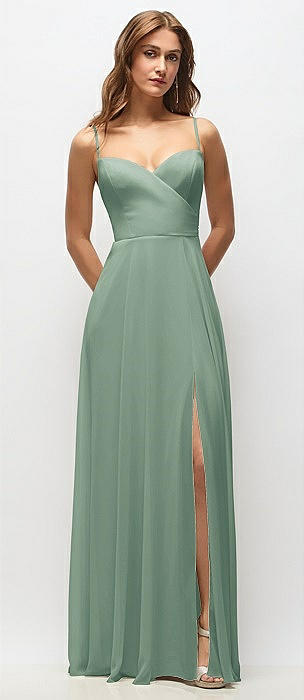 Wrap Bodice Chiffon Maxi Dress with Adjustable Spaghetti Straps in seagrass