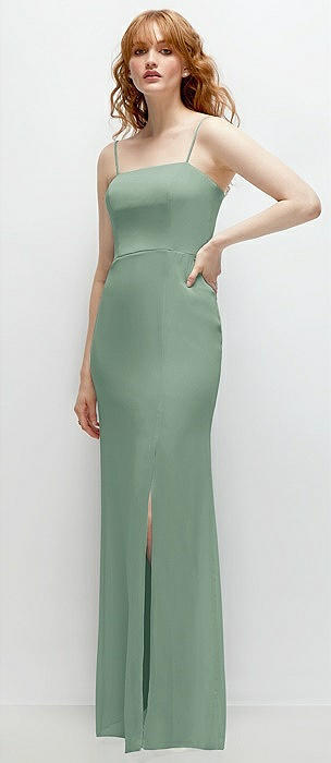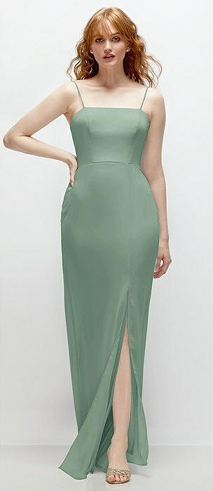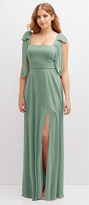 Bow Shoulder Square Neck Chiffon Maxi Dress in seagrass