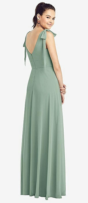 One-Shoulder Scarf Bow Chiffon Junior Bridesmaid Dress in seagrass