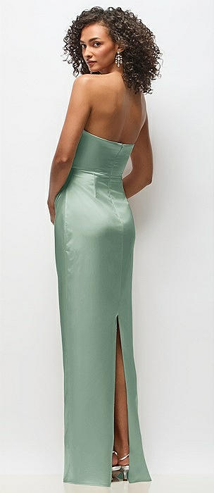Strapless Draped Bodice Stretch Satin Column Maxi Dress in seagrass