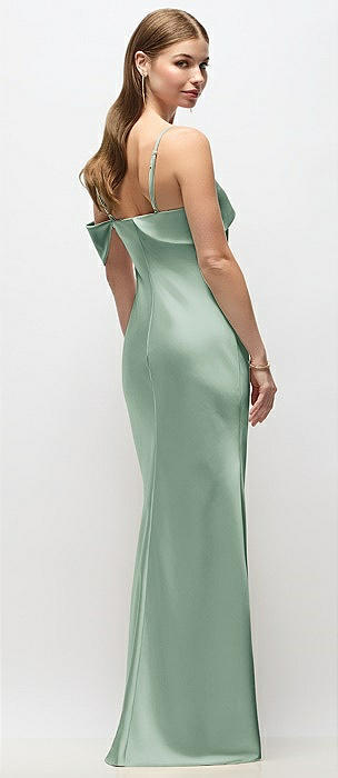One-Shoulder Bias-Cut Satin Maxi Dress with Cascading Shoulder Bow in seagrass