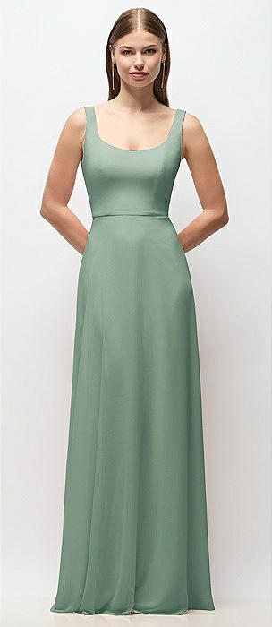 Scoop Neck Tank Strap Chiffon Maxi Dress in seagrass