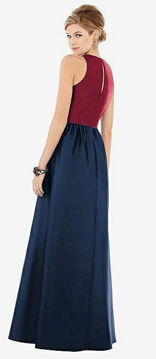 High-Neck Cutout Satin Dress with Pockets in midnight navy