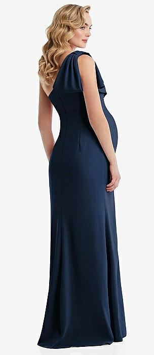 One-Shoulder Ruffle Sleeve Maternity Trumpet Gown in midnight navy