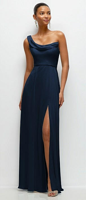 Chiffon One-Shoulder Maxi Dress with Draped Cowl Neckline in midnight navy
