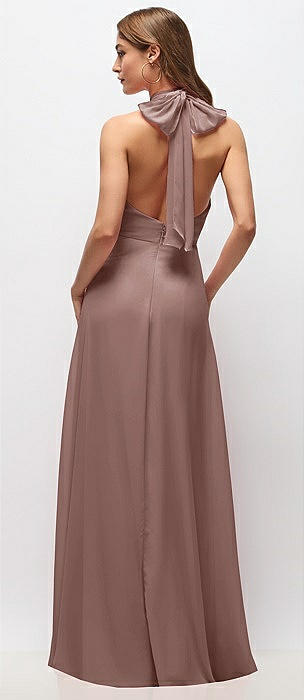 Empire Waist Chiffon Halter Maxi Dress with Convertible Spaghetti Straps in sienna