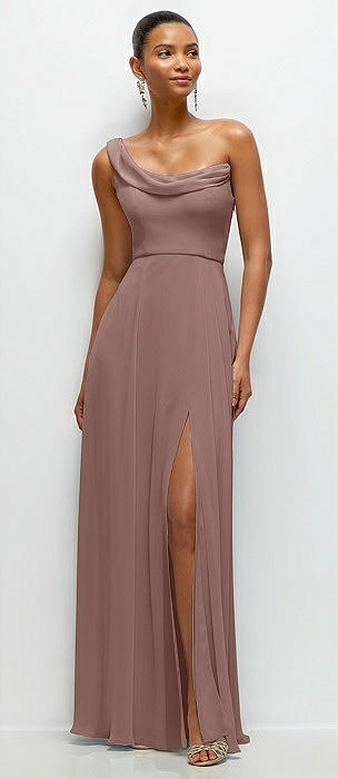Chiffon One-Shoulder Maxi Dress with Draped Cowl Neckline