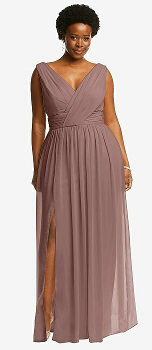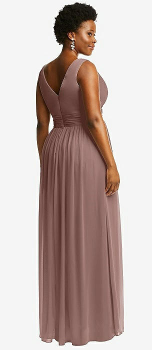 Sleeveless Draped Chiffon Maxi Dress with Front Slit in sienna