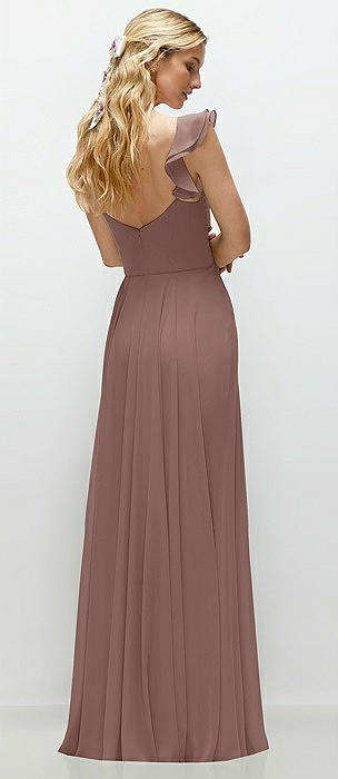 Convertible Ruffle Strap Chiffon Maxi Dress with Full Circle Skirt in sienna