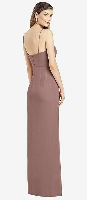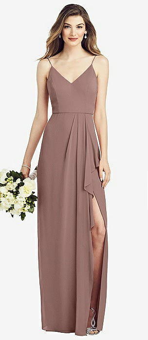 Spaghetti Strap Draped Skirt Gown with Front Slit