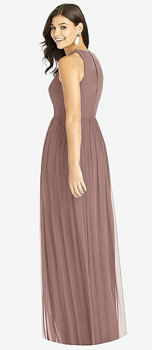 Shirred Skirt Jewel Neck Halter Dress with Front Slit