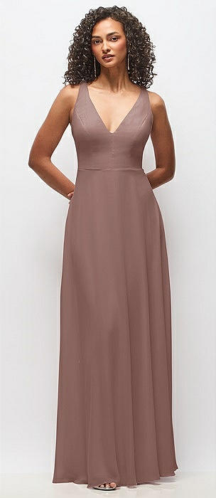 Deep V-Neck Chiffon Maxi Dress in sienna