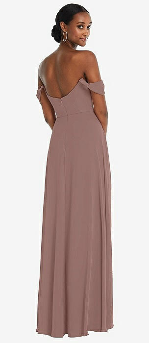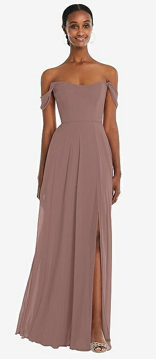 Off-the-Shoulder Basque Neck Maxi Dress with Flounce Sleeves in sienna