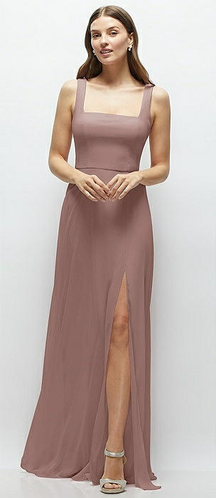 Square Neck Chiffon Maxi Dress with Circle Skirt in sienna