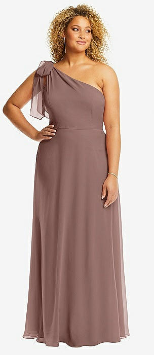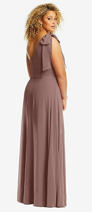 Chiffon One-Shoulder Maxi Dress with Circle Skirt in sienna