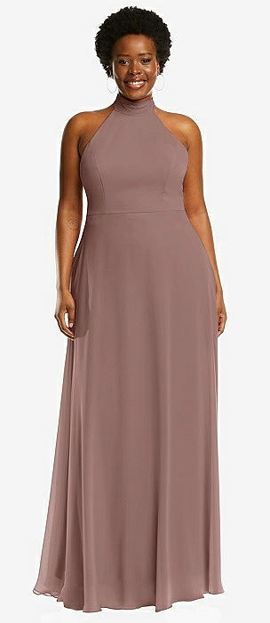 Stand Collar Halter Maxi Dress with Criss Cross Open-Back in sienna